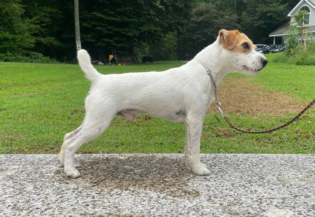 Smilin' Jack Avril is a sweet gentle gal that reminds me a lot of her mother Aguila. She has an easy care broken coat, a pretty head and good overall balance. Not a fan of the show ring, I look forward to seeing what Avril can produce for my breeding program.